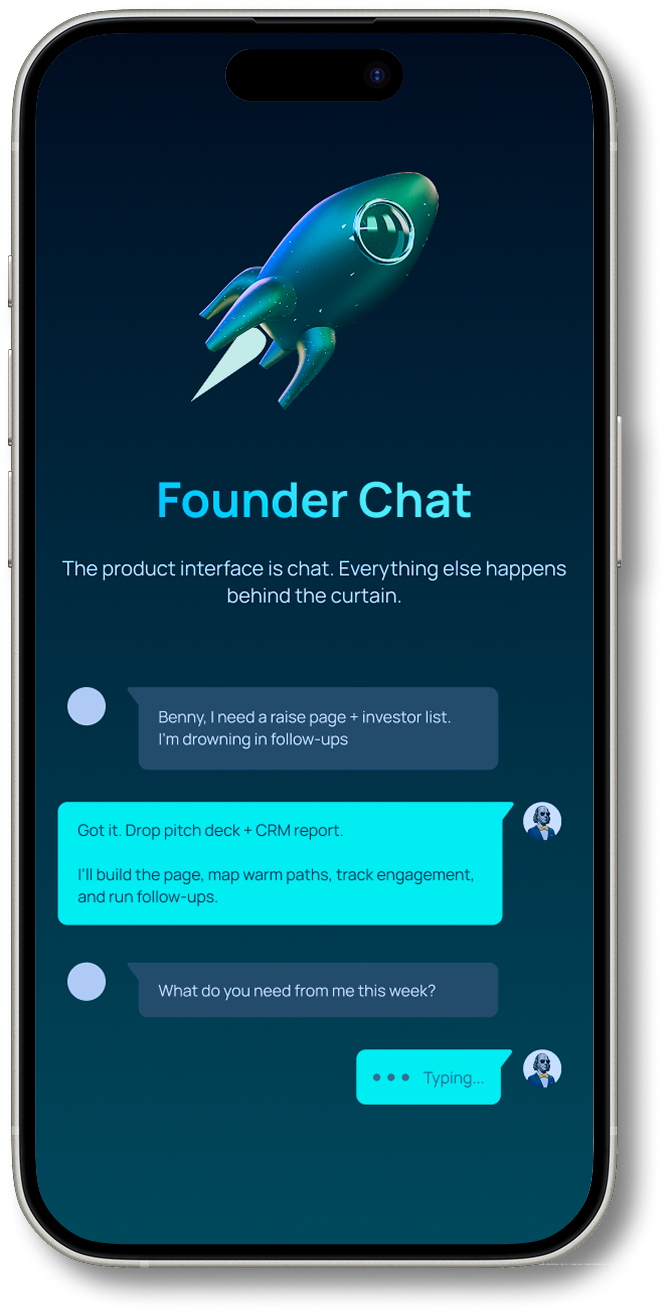The engine handles the entire fundraising stack. Founder stay focused on building.